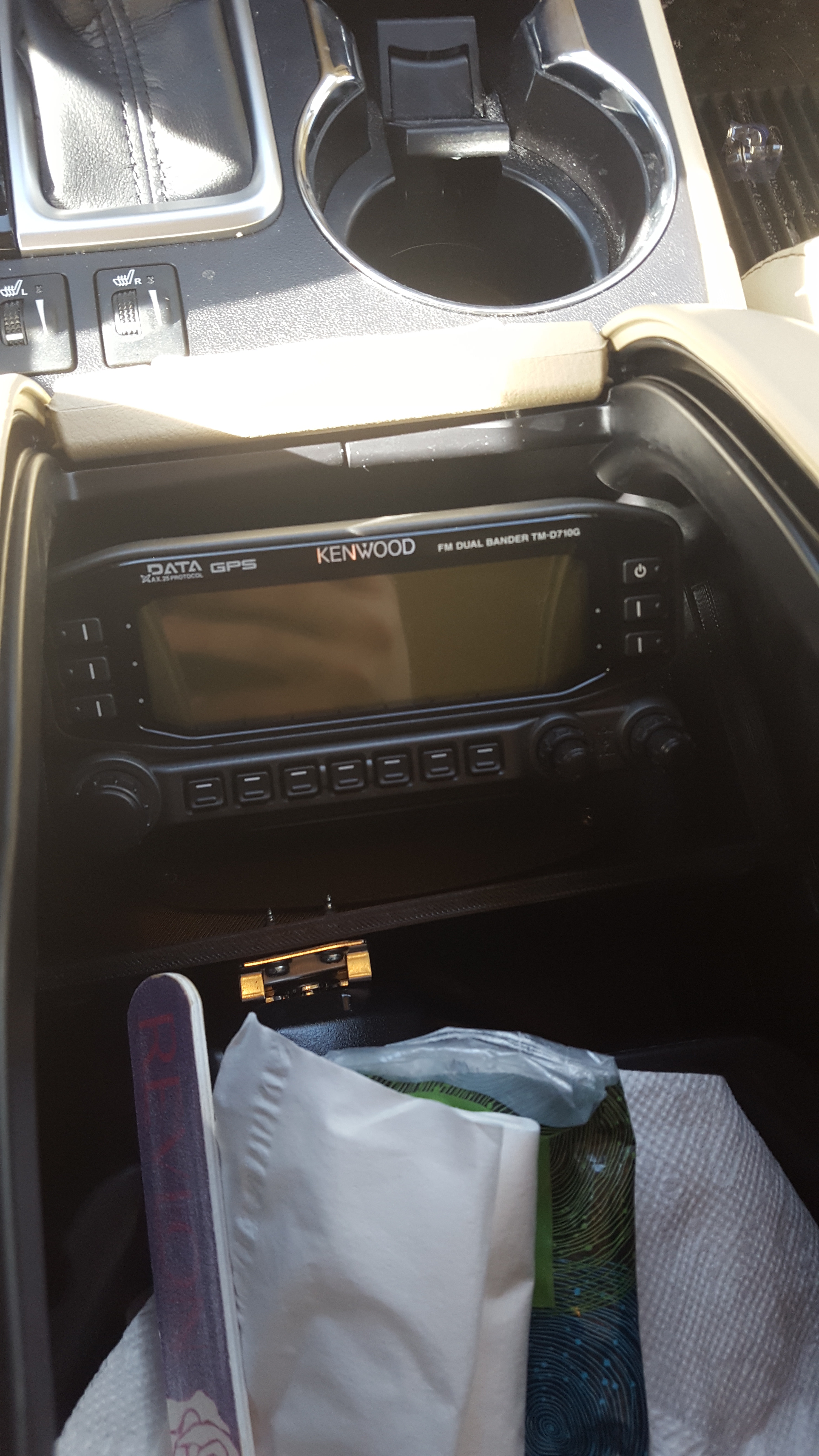 I then focused on getting my HAM radio equipment reinstalled, and prepping the foundation for a RaspberryPi in the front console. I first tested the layout for three NMO antennas, and then, well, poked holes in the roof.