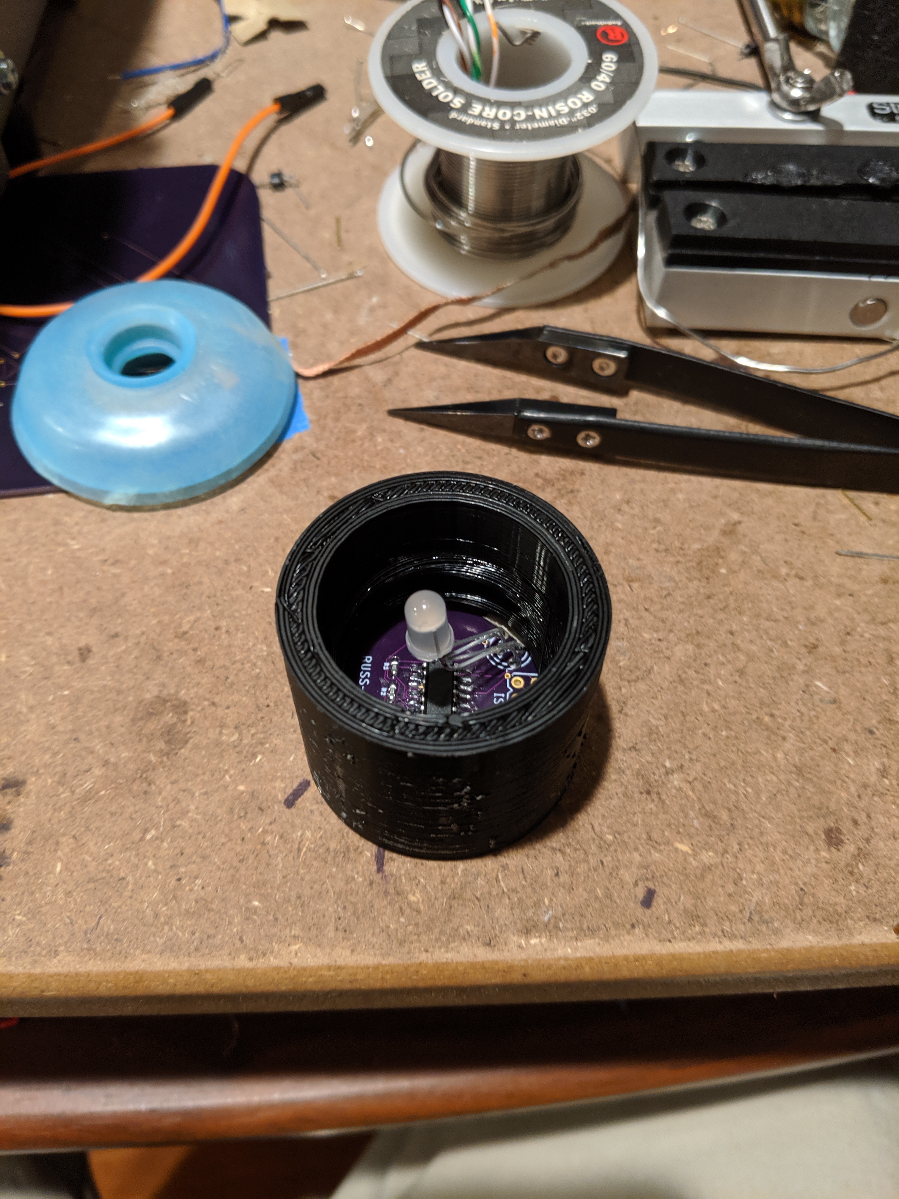 I’ve made a silly thing that does blinking LED’s in an old fashioned light diffuser. a fuse. It’s pretty simple to put together. You can use this OshPark link to order 3 boards for about $7. Also uploaded are 3D parts you can print to make the holder.
