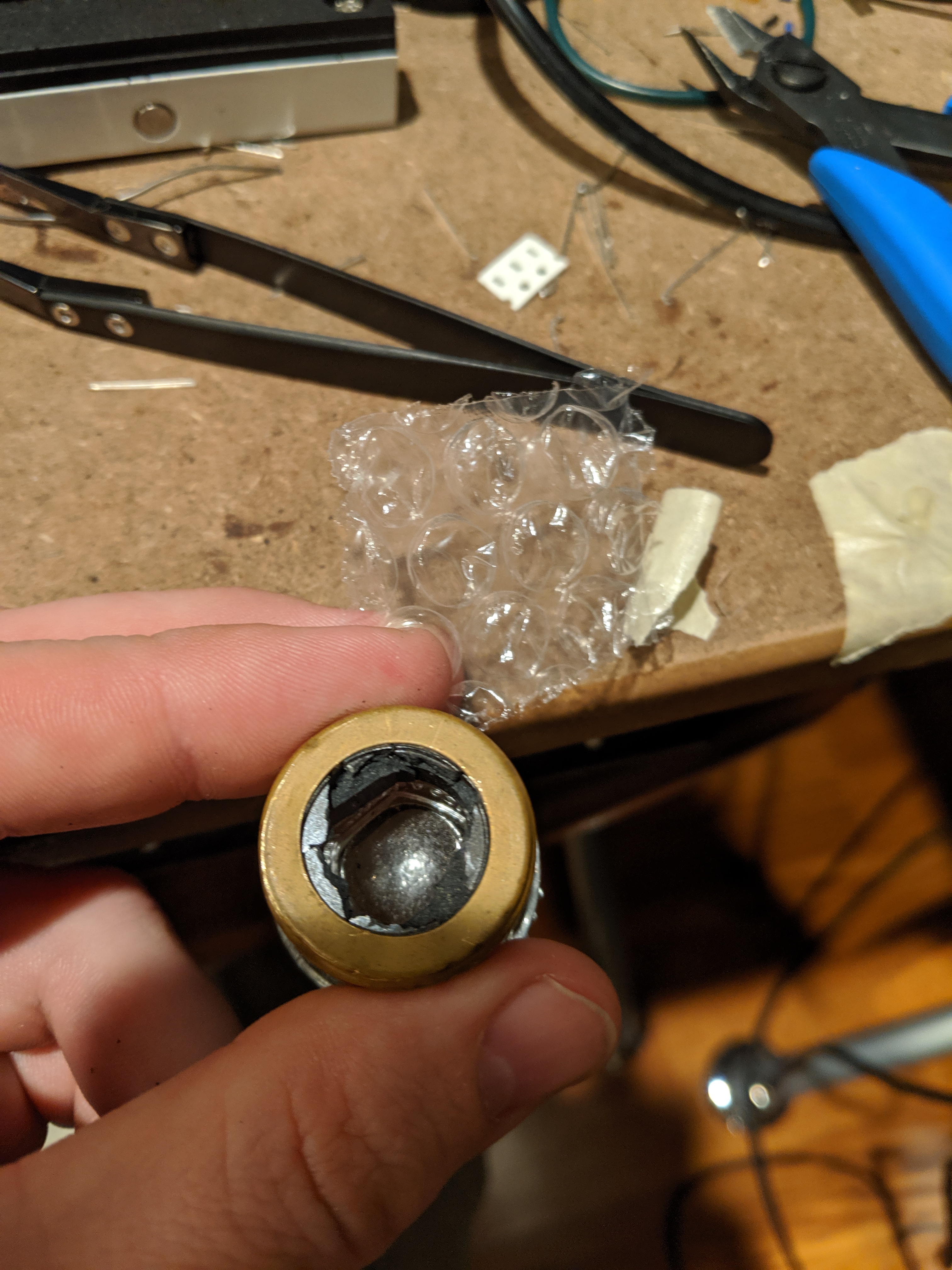 Load up the code with an AVR programmer with the settings noted in the code. Size fit the whole thing in the button and adjust the position of the LED. Add an optional light diffuser (bubble wrap, plastic food wrap, etc). Screw in the fuse and it should make contact with the two jumpers to turn it on. Bask in my randomness, and dont blow a fuse.